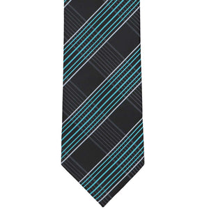 This sharp black tie features a classic plaid design with bold turquoise accents, offering a refined touch for big and/or tall men. Its versatile style easily transitions from day to night, making it perfect for both professional and formal events. The dark background complements a black or gray suit effortlessly, ensuring a polished appearance. For an extra touch of sophistication, complete your look with the matching pocket square (sold separately).