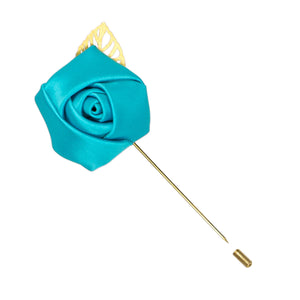 Get ready to fall in love. This lapel pin is part of our premium line of ties and accessories. To ensure it matches our ties, we made the floral puff from the same heavyweight material. The fabric has a gorgeous sheen finish to it, but it's not too shiny either. The lapel pin is accented with an elegant gold-tone leaf and matching metal pin.