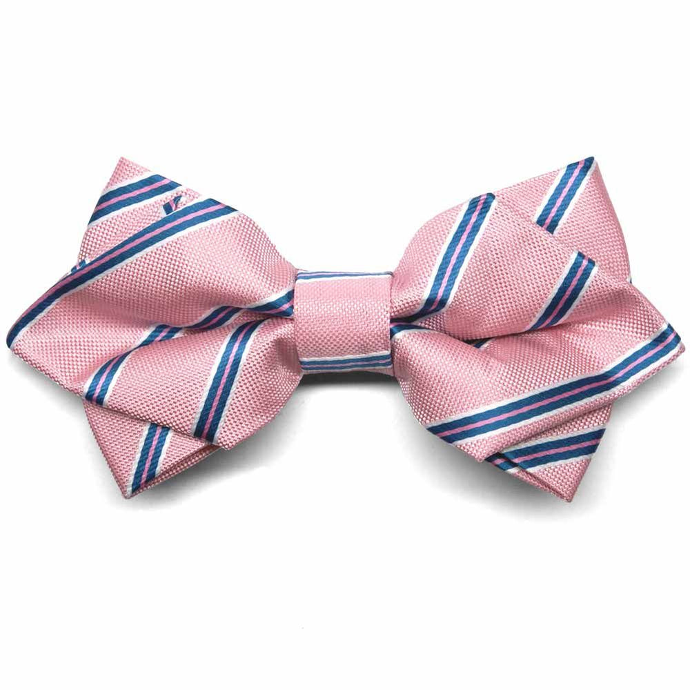 Celebrate in style with this vintage pink striped diamond tip bow tie, perfect for a gender reveal party or Valentine’s Day! The playful combination of blue, pink, and white pencil stripes offers a festive and charming touch to any special occasion. Whether you're part of the celebration or the guest of honor, this bow tie adds a refined yet fun flair to your look. The diamond tip design enhances its unique style, making it a standout accessory for your next event.