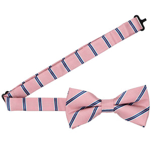 Celebrate in style with this charming vintage pink striped bow tie, an ideal choice for a gender reveal party or Valentine’s Day! The delightful blend of blue, pink, and white pencil stripes adds a fun and festive touch to any celebration. Whether you're part of the party or the guest of honor, this bow tie brings a playful yet refined flair to any special occasion.