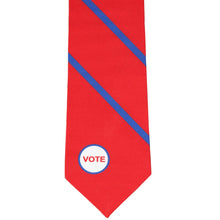 Get ready for election day in this red and blue striped tie, featuring a VOTE sticker emblem at the base of the tie. The nonpartisan, patriotic colors are perfect for keeping political opinions aside and simply inspiring others to perform their civic duty.
