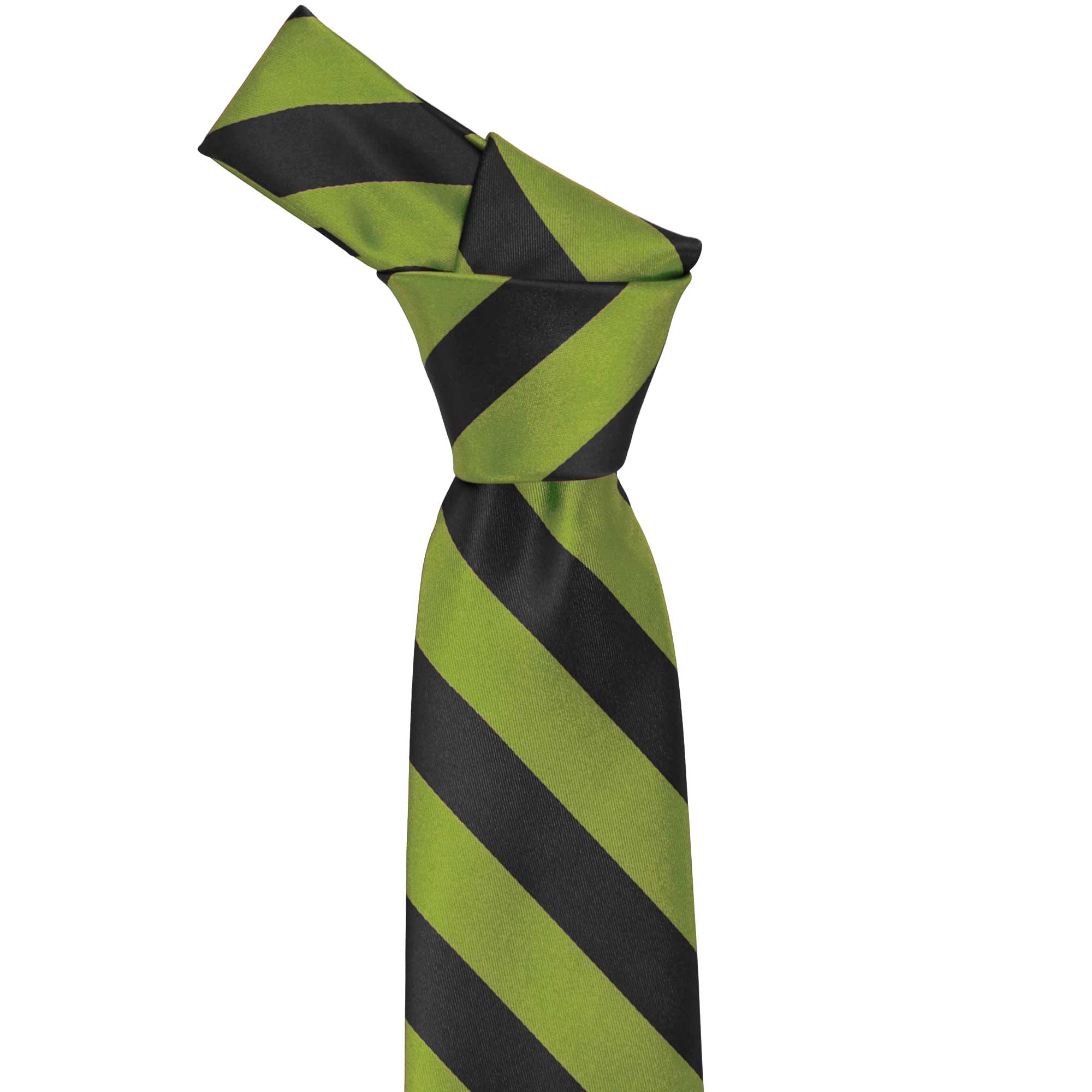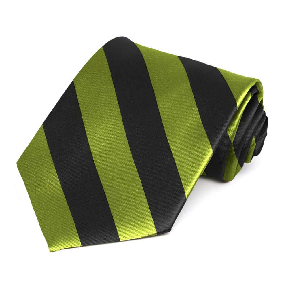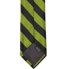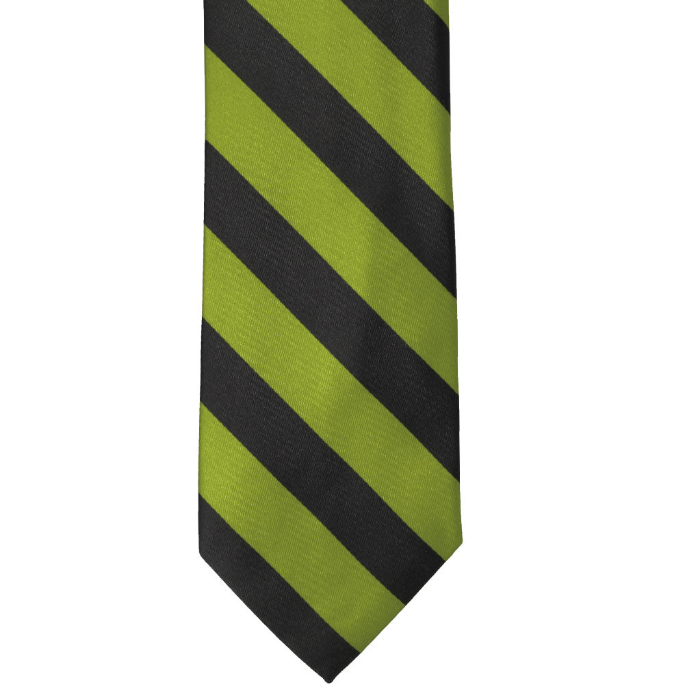Add some character to your look with this bold wasabi and black striped tie. The classic 0.75-inch stripes are the perfect width for getting noticed without being overwhelming. Add it to a black suit for a dashing formal look or use it to match company colors as part of a uniform.
