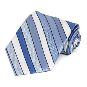 You’ll love the timeless design and refreshing blue tones of this striped necktie, crafted specifically for taller and/or fuller-figured men. Take a closer look at those stripes. They alternate between ribbed, satin and textured designs for a fresh, summertime design. Pair it with your favorite khakis for a relaxed look, or dress it up with a navy blue or gray suit for a polished, professional style.