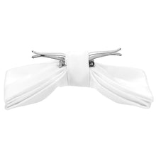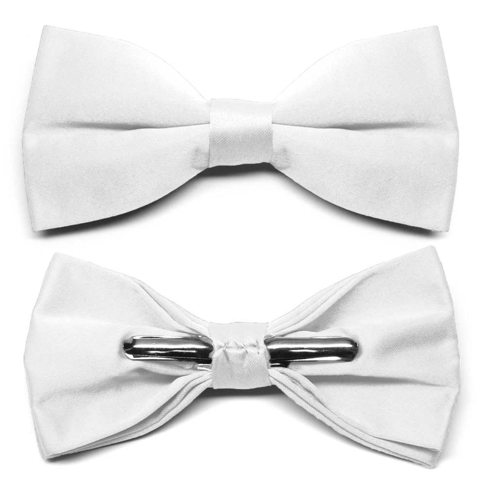Wear a perfect bow every time with this white clip-on bow tie. This pre-tied bow tie features a heavyweight clip that discretely attaches to either side of your shirt collar material for a secure fit. One size fits all, regardless of neck size. Has a soft, satin finish. See related products below for a matching cummerbund and pocket square.