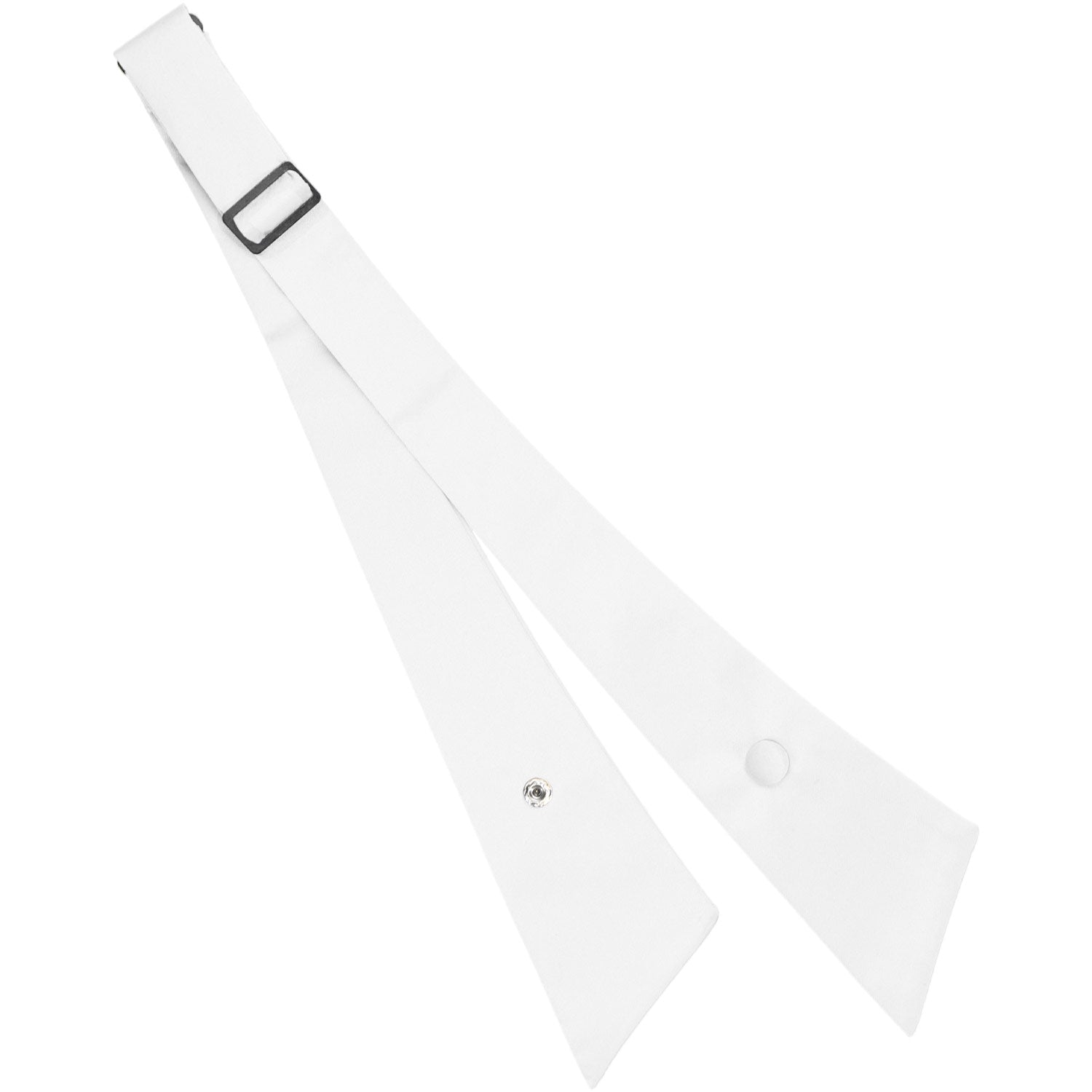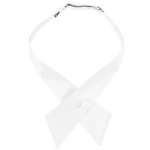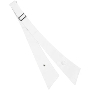 This white crossover tie is a popular choice for uniform attire. It has an adjustable band to fit up to a 17-inch neck size. Made from durable material with a very light satin finish.