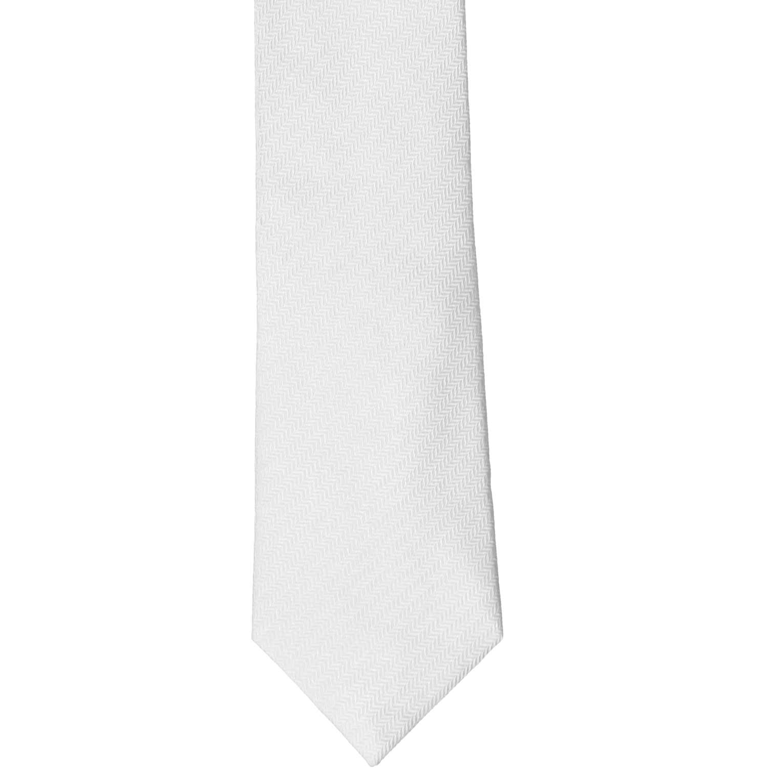White on white herringbone in a modern, slim cut. Consider this trendy tie for your wedding day. It's the perfect match for a black suit. Add our white herringbone pocket square for a complete look (sold separately).