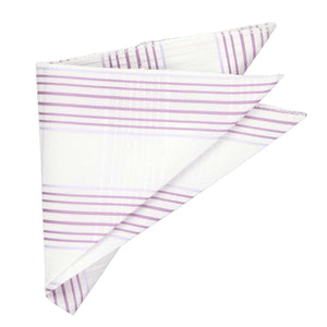 Brighten up your wardrobe with this fashion-forward pocket square, designed for spring and summer style. The light purple hues pop against a crisp white background, creating a bold yet sophisticated plaid pattern. Pair it with a navy blue or gray suit for a polished formal look, or keep it office casual with gray slacks and a white shirt. Looking to complete the ensemble? Matching neckties and bow ties are available to help you step up your style game!