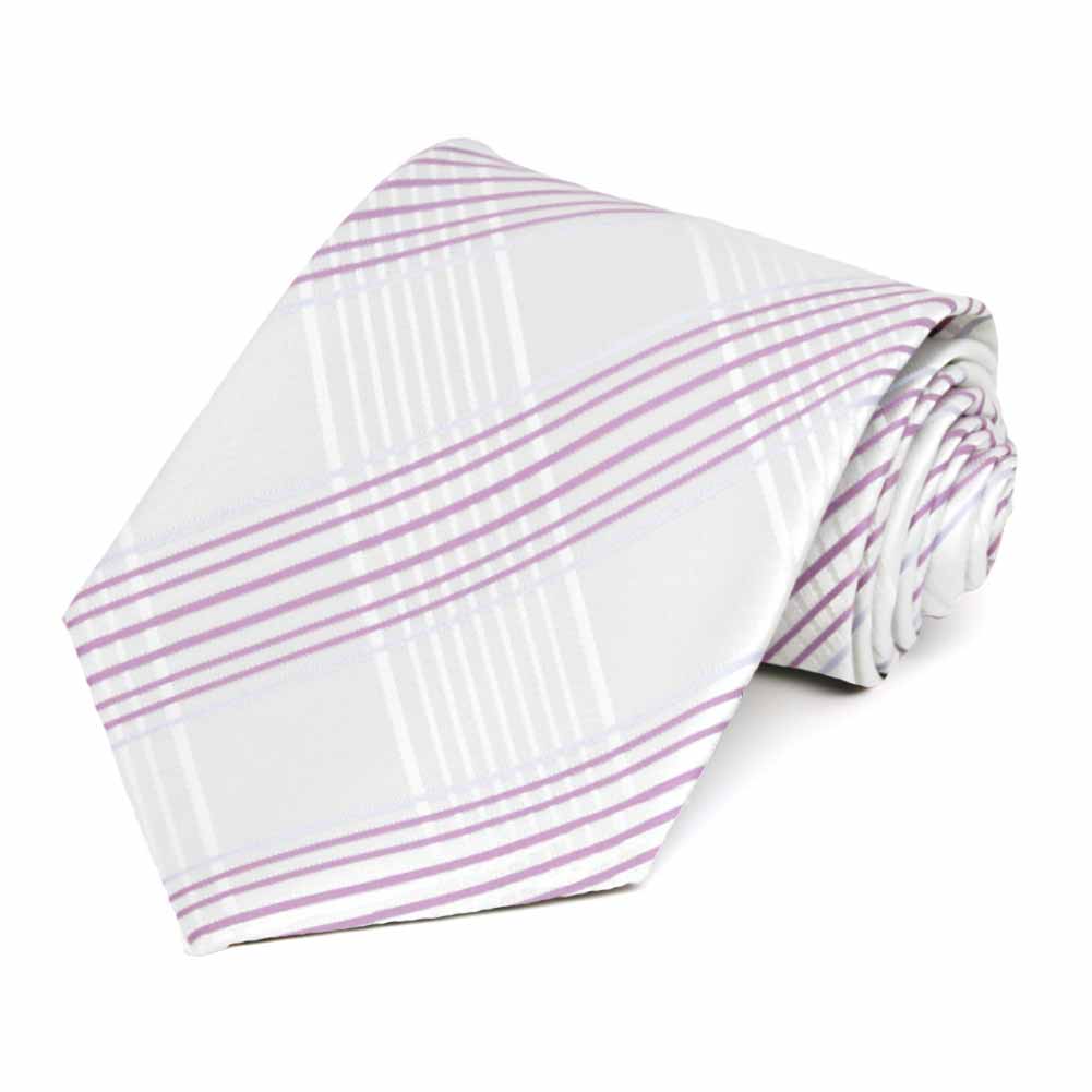 This stylish tie is made for big and/or tall men who want to make a statement in spring and summer! Light purple tones pop against a crisp white background, creating a bold plaid pattern that’s both fresh and fashionable. Whether you’re dressing up for a formal occasion with a fitted navy blue or gray suit, or keeping it casual with gray slacks and a white shirt for the office, this tie is the perfect way to brighten up your look. The subtle pops of color will help you shake off the cold-weather blues in style!
