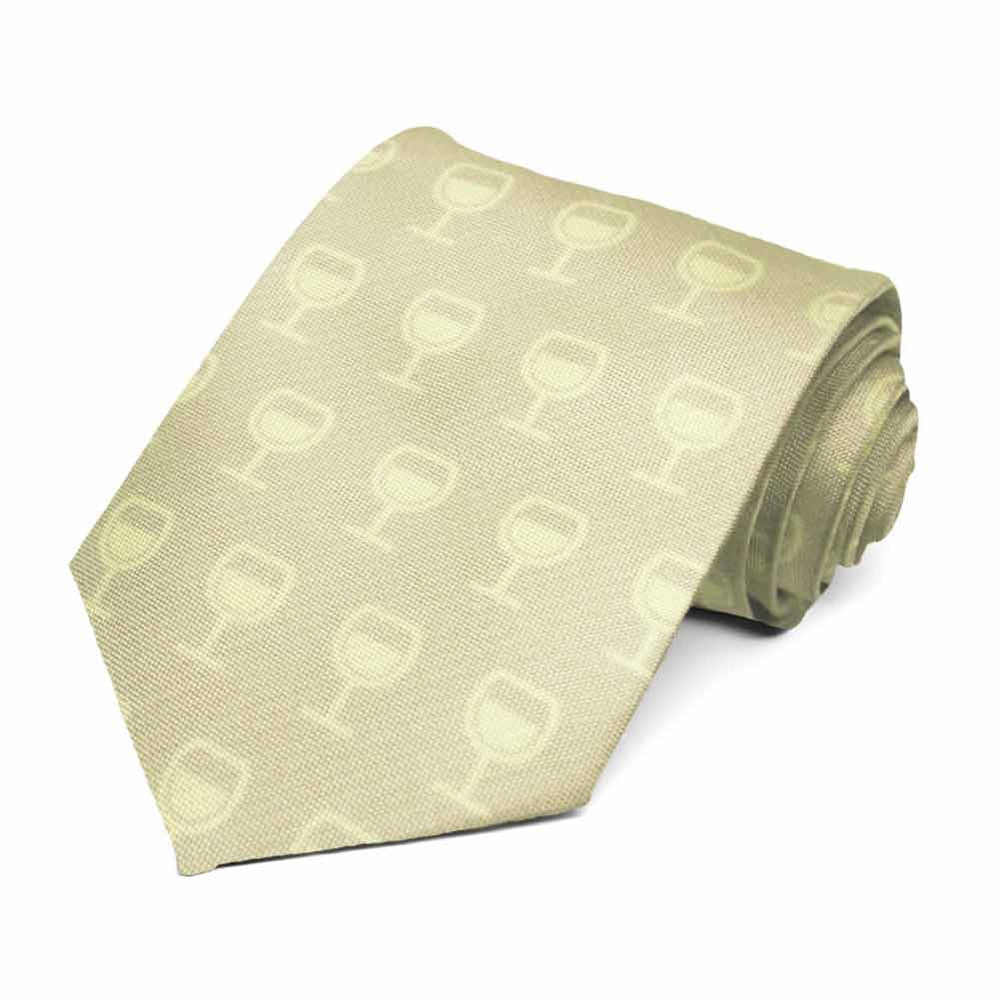 Another tie? Wine not. Sit back and relax in style with this white wine themed necktie. The sweet design features a wine glass pattern in tone-on-tone colors. This tie looks crisp paired with a navy blue suit.