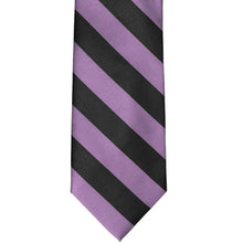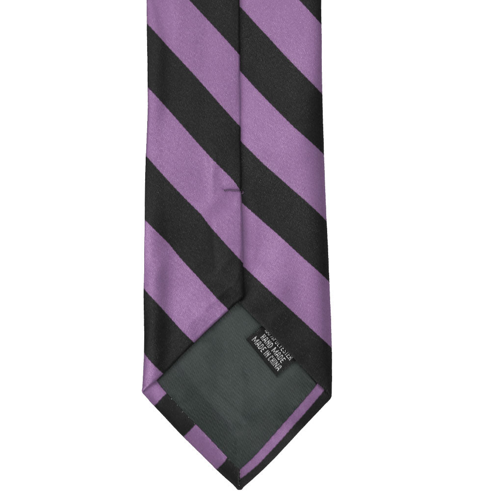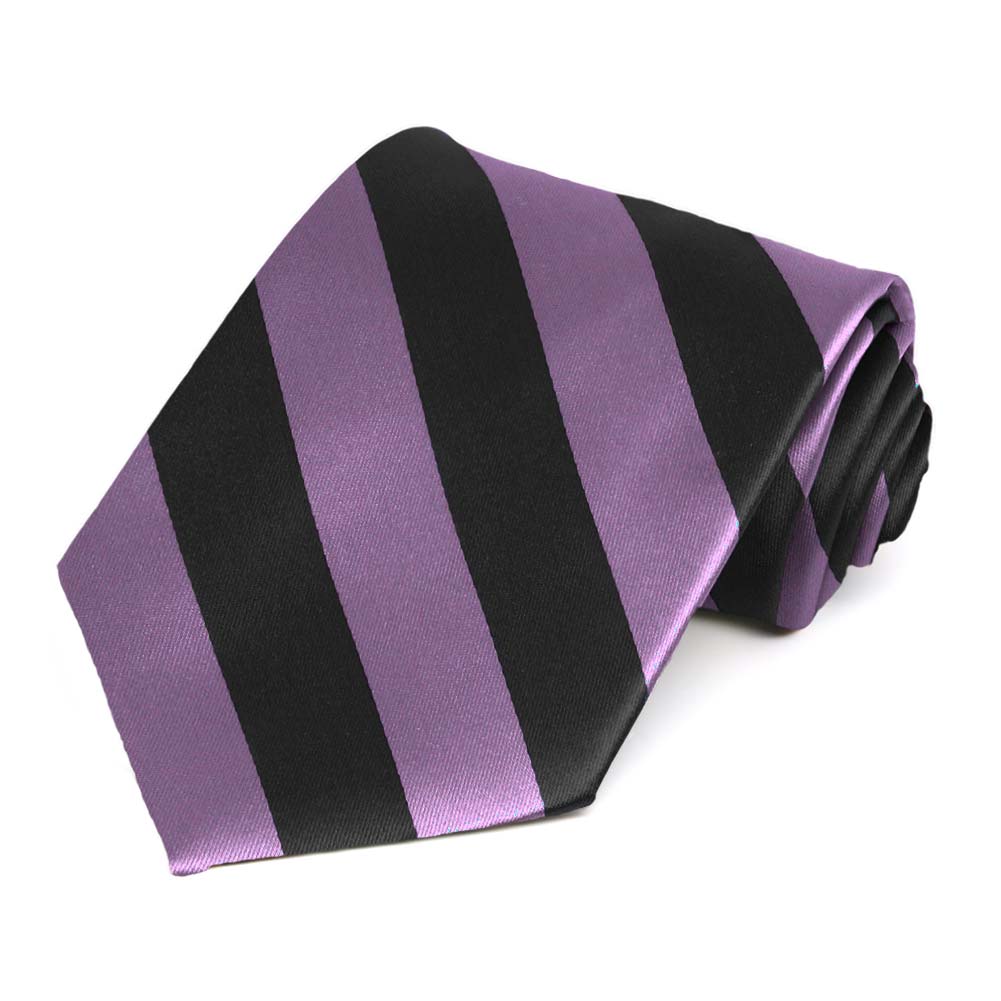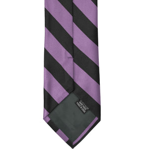 Your groomsmen will stand out in these wisteria purple and black striped ties. The wide, two-color stripes are a traditional style that will remain timeless as you look back on your wedding photos. Offset the groom in our wisteria purple solid color tie. This striped color combo matches most suits, but we personally like it paired with black or gray. Finish their wedding day look with matching wisteria pocket squares (sold separately).