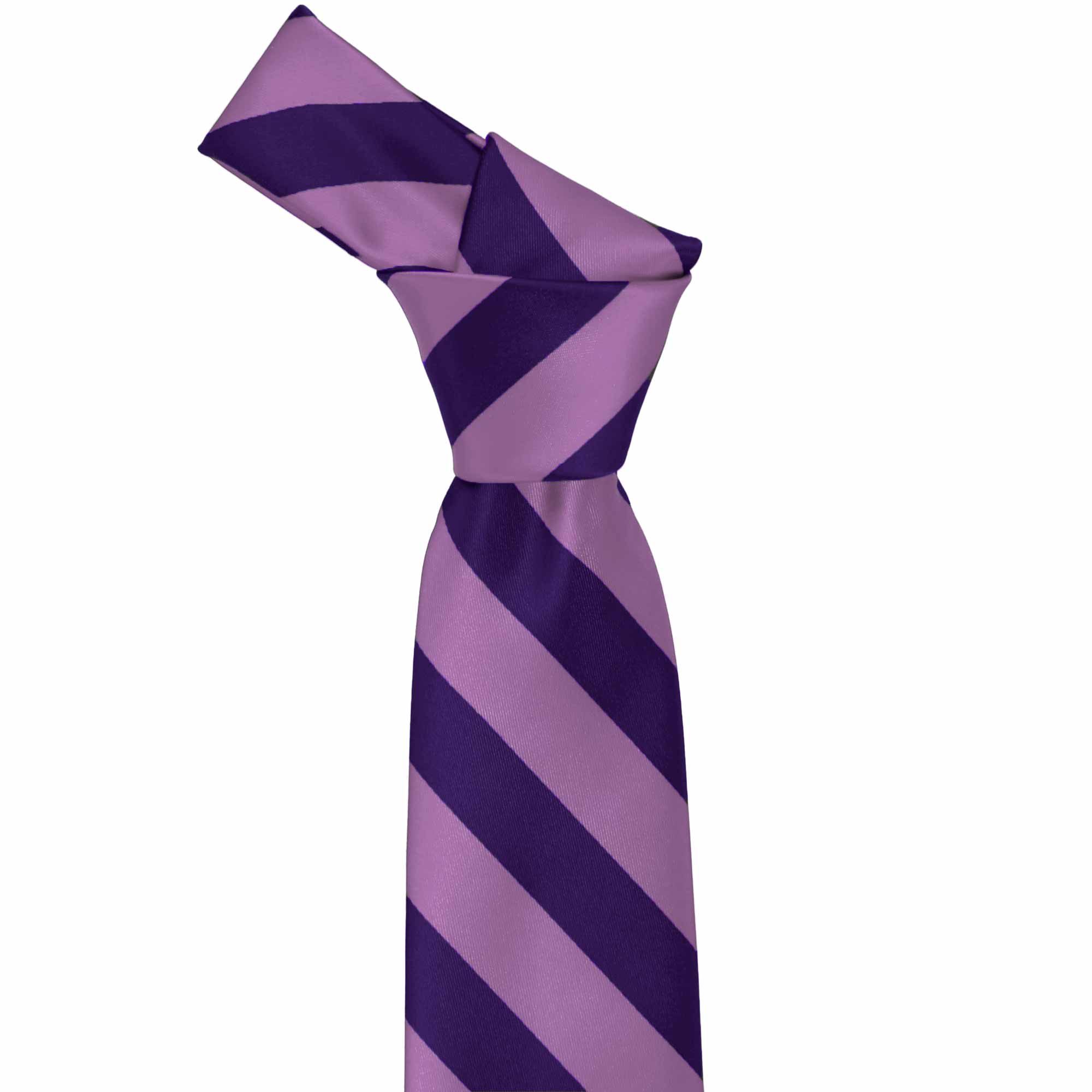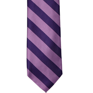 This wisteria and lapis purple striped necktie is popular for weddings and everyday attire. It is part of our exclusive (and most popular) line of striped neckties. Matching wisteria purple or lapis purple solid color ties and pocket squares are available for purchase.