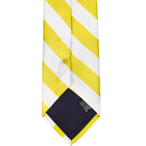 Add a bright and cheery vibe to your spring and summer wardrobe with this yellow and white striped tie. The stripes are a classic width at 0.75-inches, giving this tie a collegiate feel. Pair it with a white button down shirt and linen chinos for a relaxed, beachy look. Try a gray or navy blue suit when you're going more formal. Don't forget to purchase the matching pocket square for your jacket pocket!