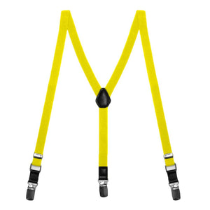 These men's yellow suspenders are colorful and fashionable. The trendy, half-inch strap size looks great with bow ties and skinny ties—and we have matching ones sold separately. Wear them with jeans for a casual vibe or dress them up for formal occasions like Prom. However you wear them, the bright yellow color is sure to turn heads.